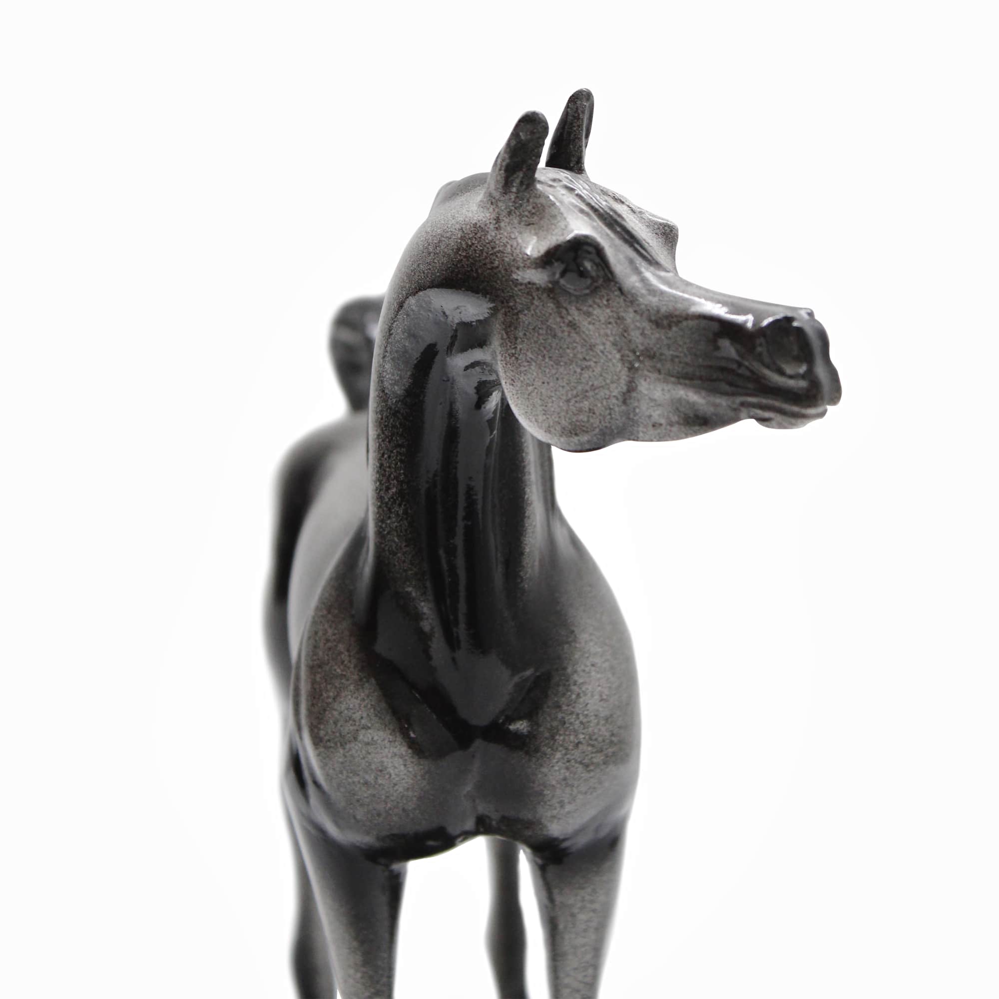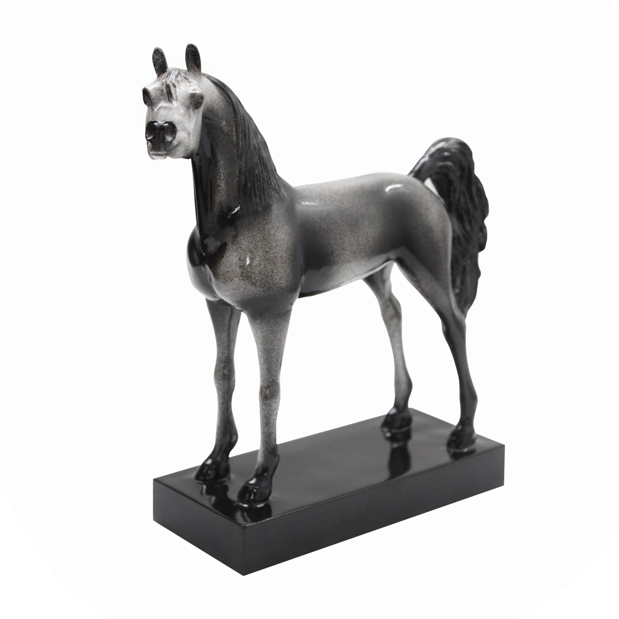 This meticulously crafted black Arabian horse figurine captures the breed’s legendary elegance and strength.