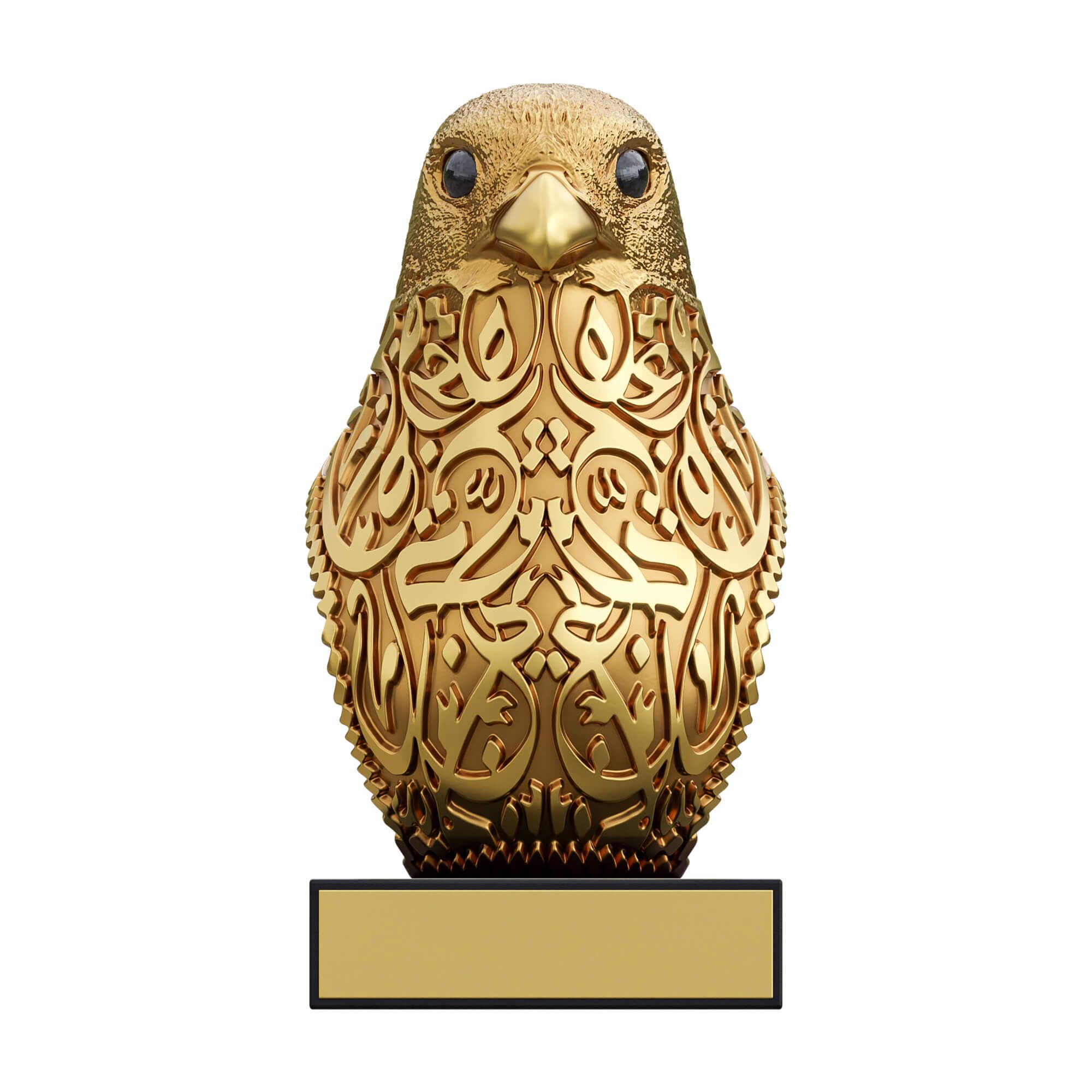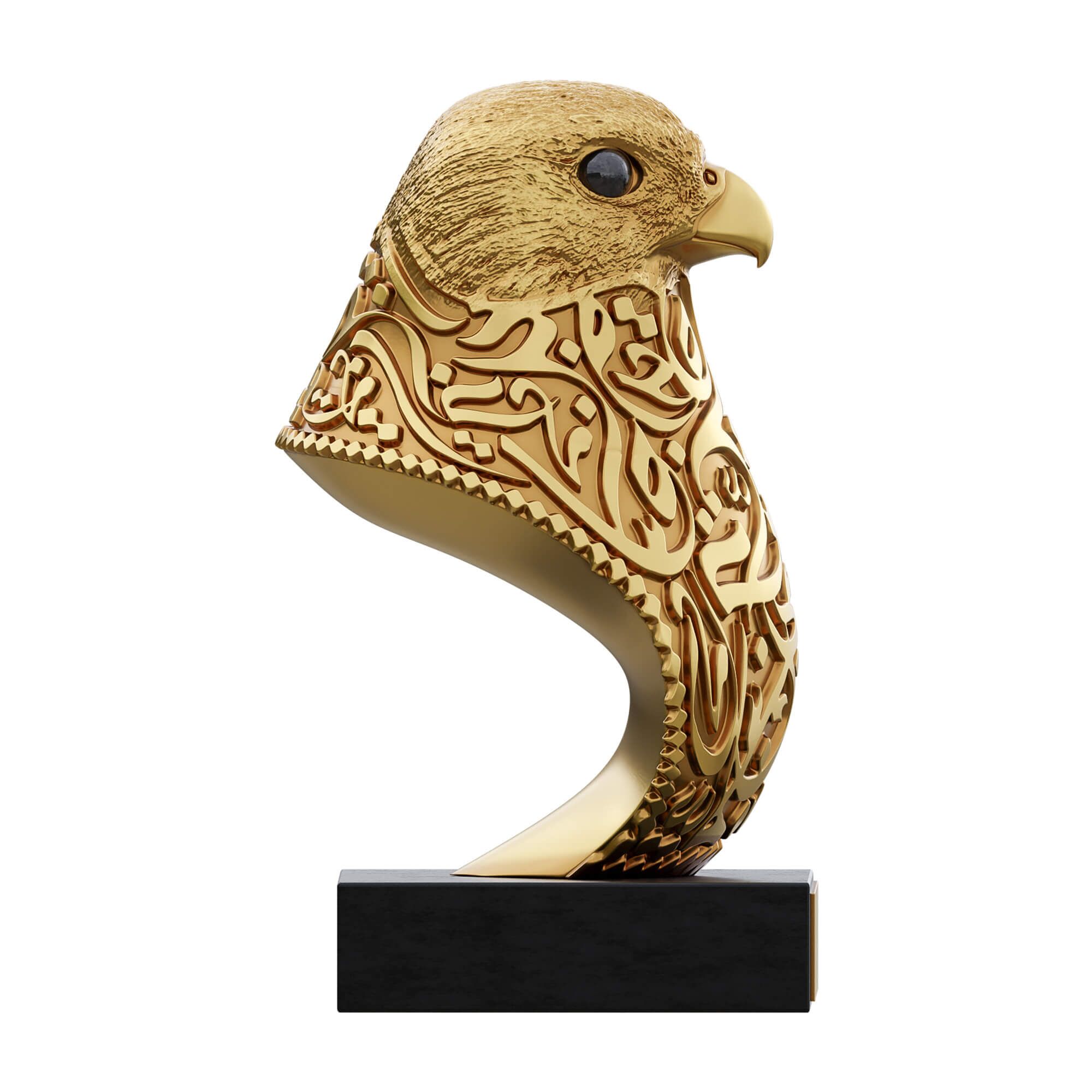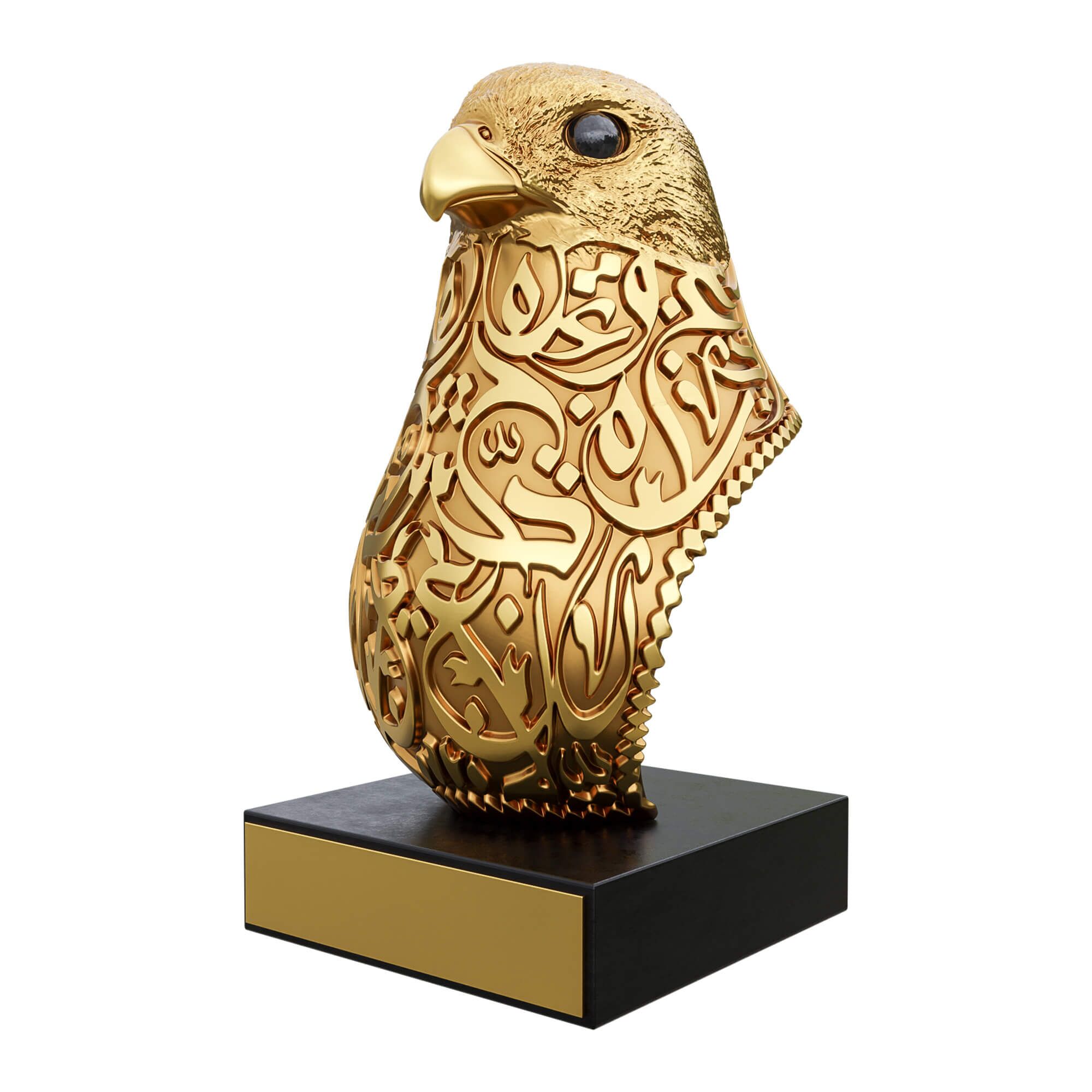 Showcasing the harmony of culture and artistry, the Calligraphic Peregrine Falcon is a masterpiece of modern Emirati design. Made from durable 3D resin and finished in antique gold, this sculptural bust represents the noble falcon—an enduring symbol of vision, leadership, and pride in the UAE.