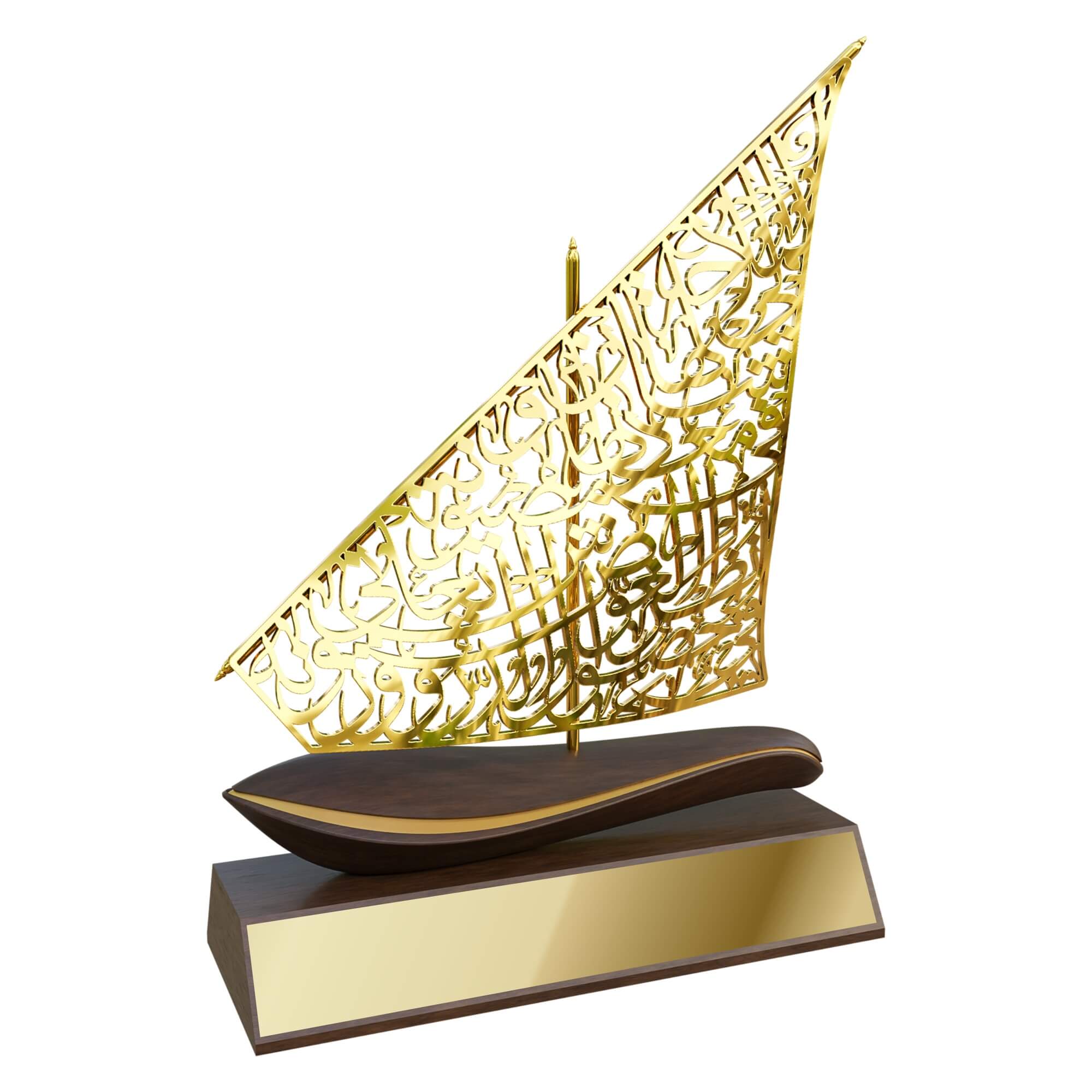 - Gold-plated calligraphic sail featuring a Sheikh Zayed poem