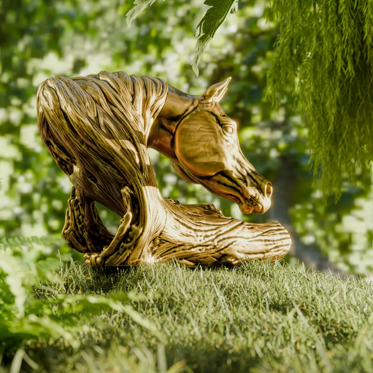 “Dream” is a captivating 3D sculpture that beautifully merges the essence of nature and the majestic spirit of the Arabian horse. The horse head, emerging organically from a tree trunk, symbolizes the deep connection between nature and freedom. With intricate details and flowing lines, Dream Arabian Horse Sculpture portrays a horse as if it’s dreaming of liberation, seamlessly growing from the earth. A perfect statement piece for those who appreciate elegance, symbolism, and the untamed spirit of nature.