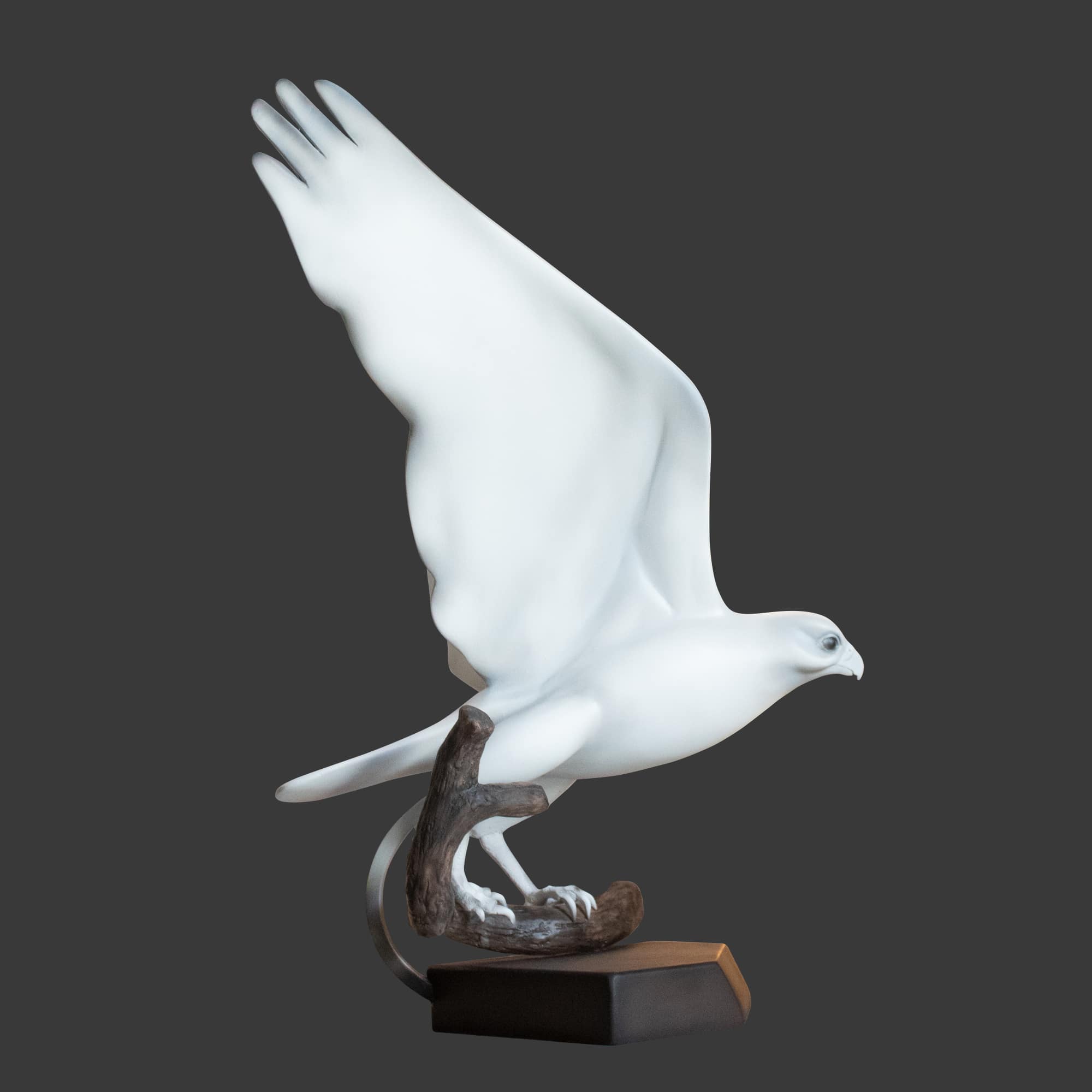 Capture the awe-inspiring grace of the White Peregrine Falcon with this breathtaking 3D sculpture, showcasing the majestic bird in a dynamic take-off pose from a tree branch.This stunning White Peregrine Falcon Sculpture embodies the spirit of freedom and precision that defines the peregrine falcon. Mounted on a sleek base, it features a metal plate for personalized engraving, making it a perfect gift for bird lovers, collectors, and those who admire the beauty of nature. Elevate your space with this symbol of power and elegance.